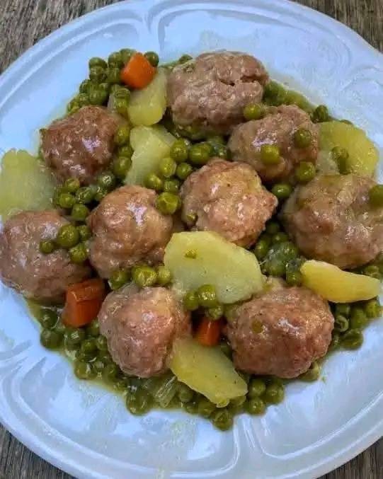 Polpette con i Piselli, Patate e Carote sono Troppo Buone